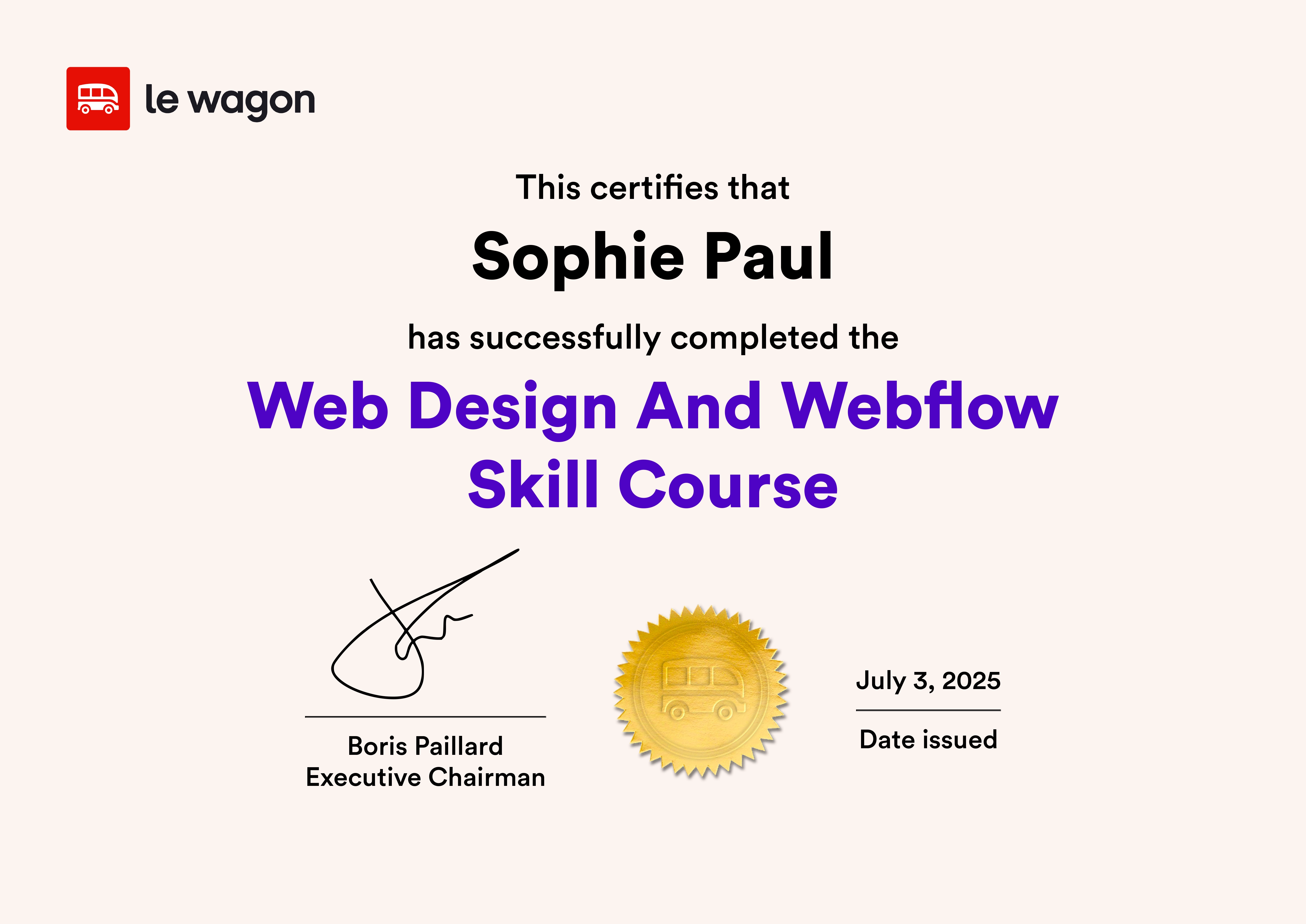 Skills courses Le Wagon pour perfectionner mes connaissances en UX/UI, responsive design, CMS et SEO - 2025.